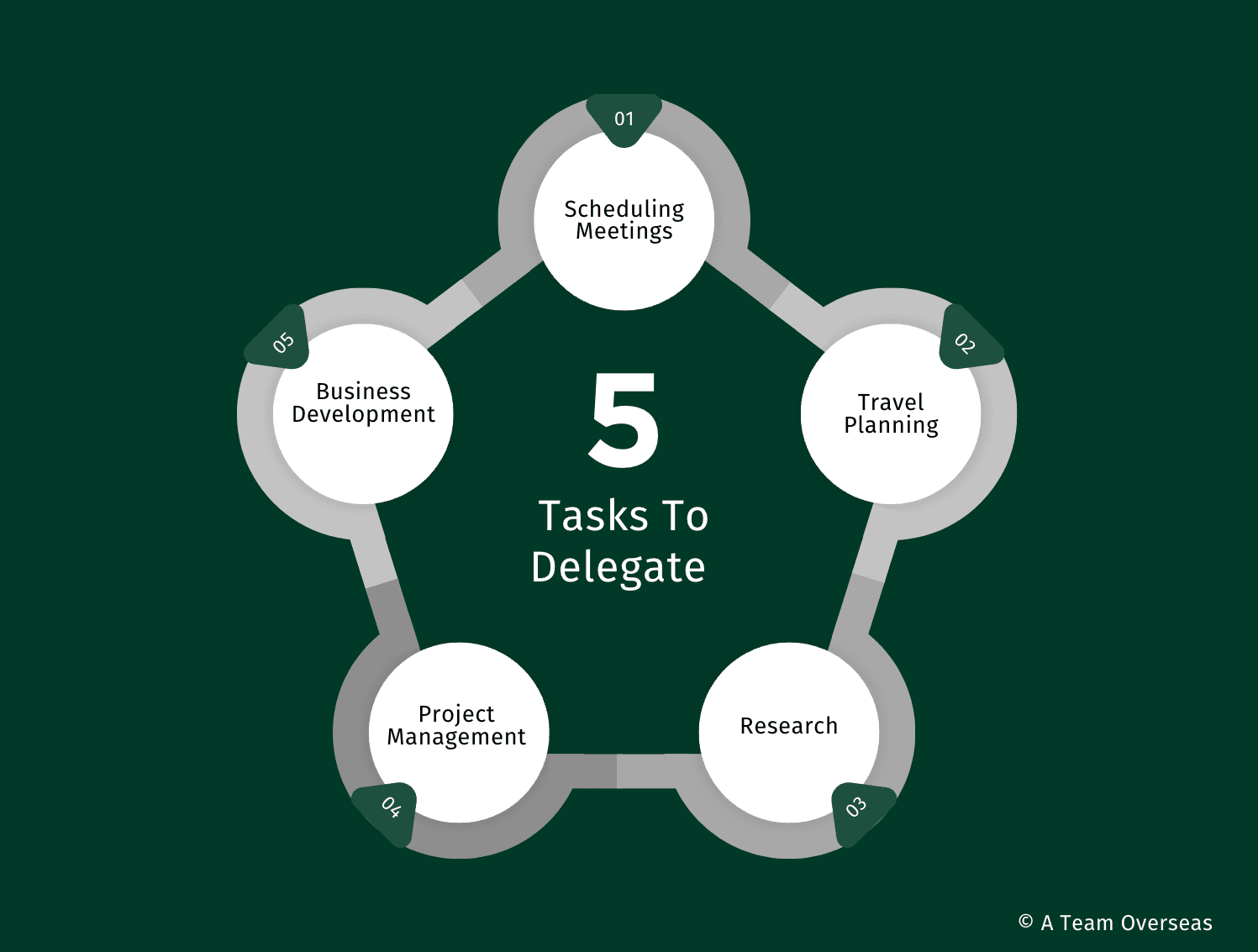 Understanding how to efficiently delegate tasks to your remote executive assistant will make all the difference in the way you manage your workload. After all, if you’ve decided to employ virtual support, it's essential to know how to best leverage your new resource. There’s a lot that goes into how to delegate to a virtual assistant, and it can take a while to get into the most effective workflow if this is your first time working with an EA. At A Team Overseas, we’ve seen this process unfold countless times, allowing us to improve upon our recommended delegation strategies and fine-tune the way one should delegate to actually see work taken off their plate instead of becoming overwhelmed with the extra pair of hands on deck.