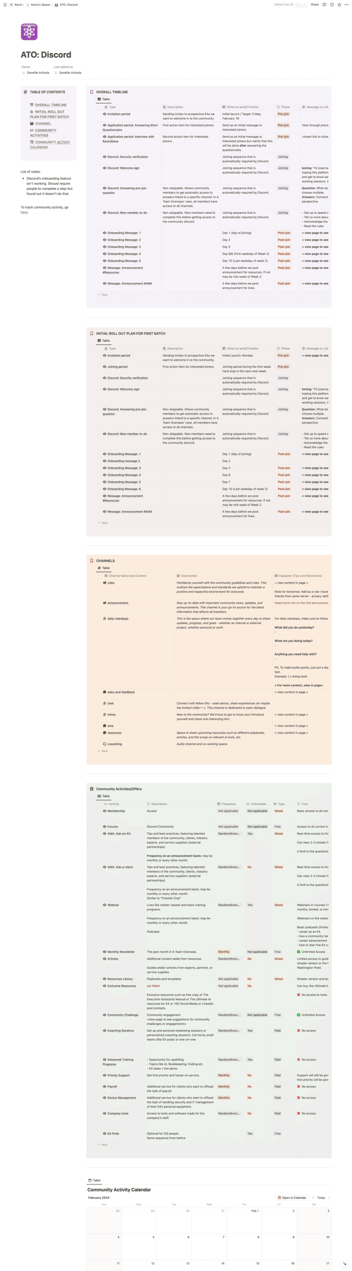 Here is the actual output of Dane’s detailed planning for rolling out our EA community. Even better than what I would’ve done.
